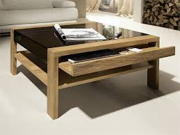 admirable modern solid wood table design inspirations with black glass top and storage drawer.